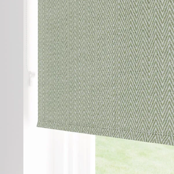 Blackout roller blind with woven herringbone design. Made from recycled polyester, available in multiple colours and sizes. Blocks light and ensures privacy, supplied with all fixings for quick and easy installation in any interior style.