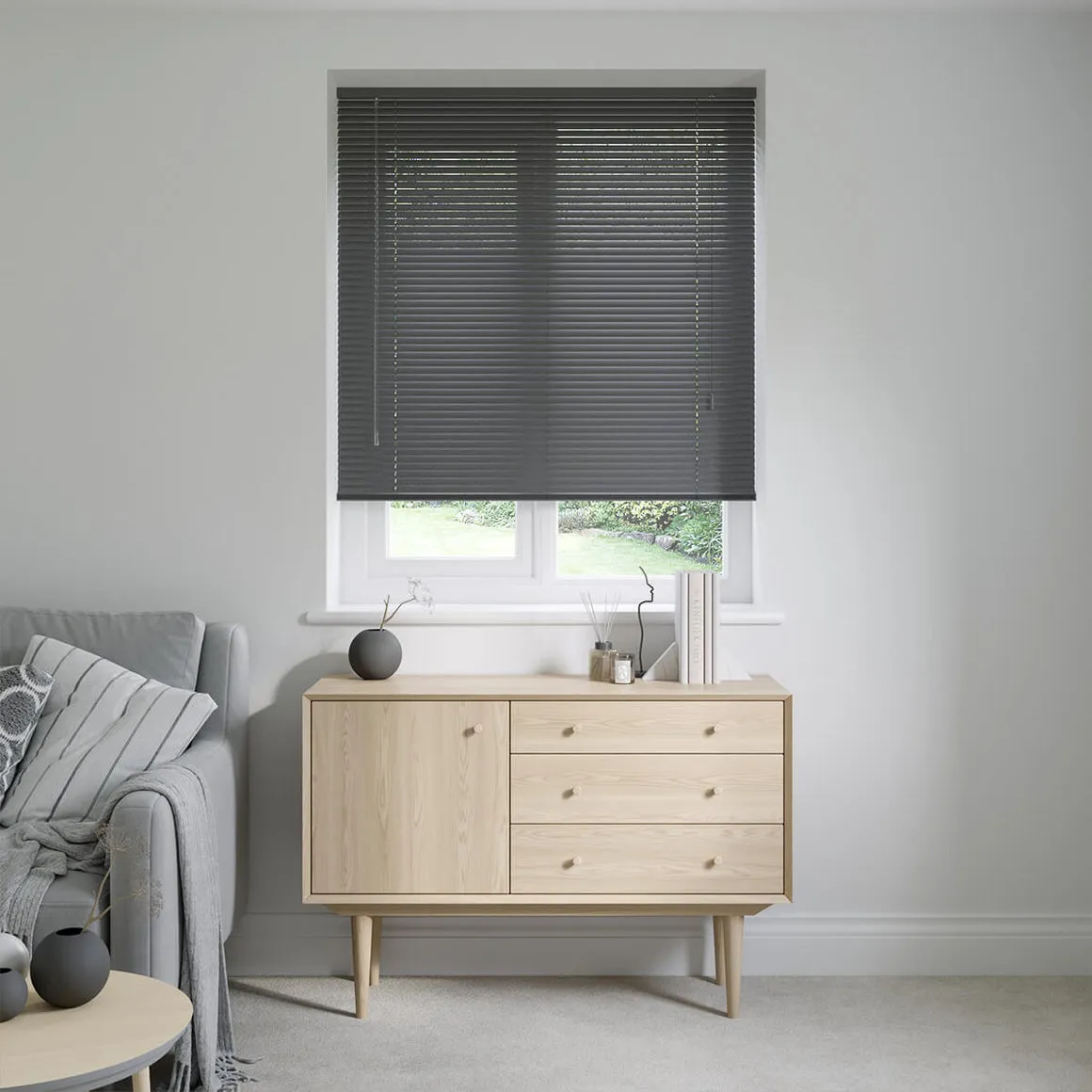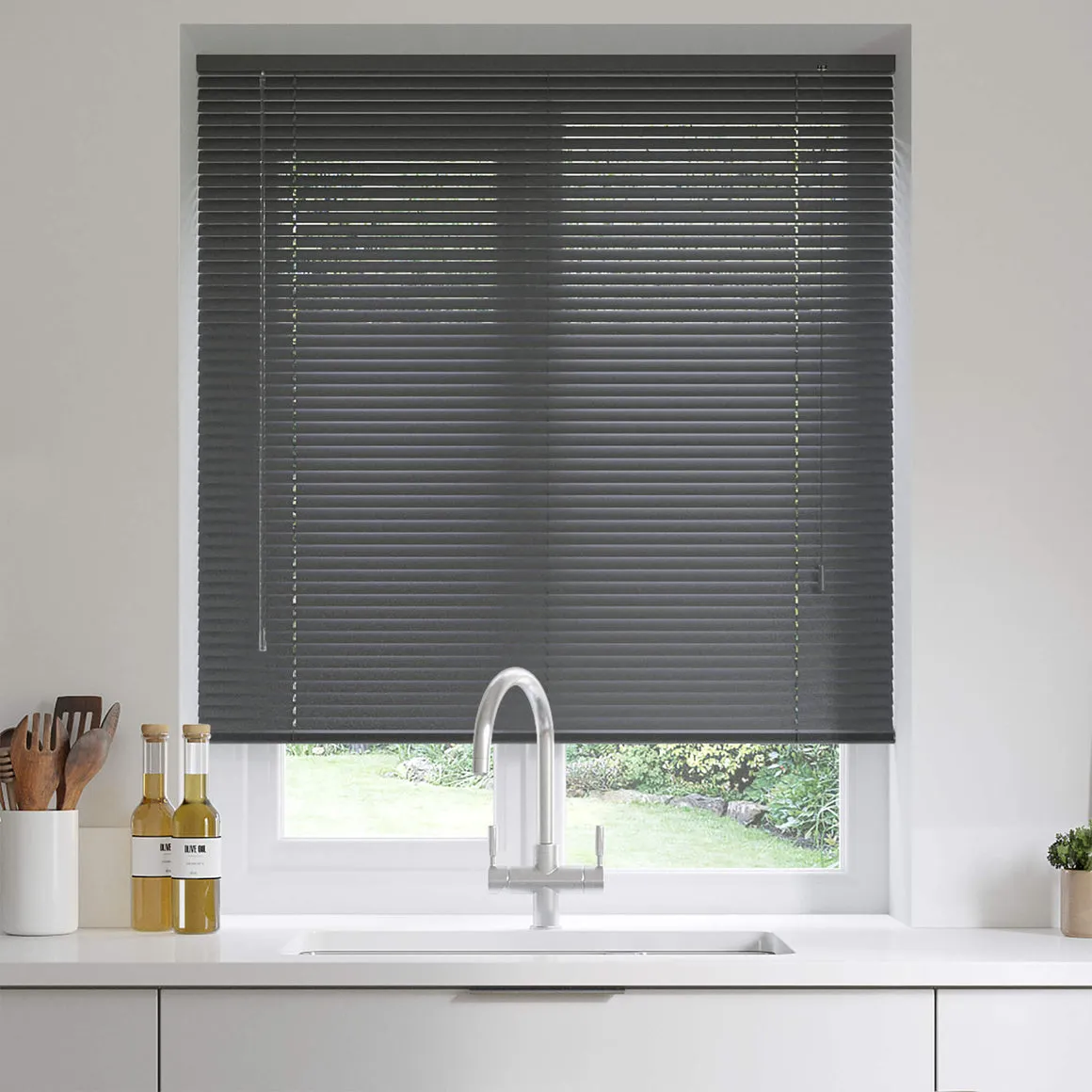 Charcoal Grey Venetian Blinds feature durable aluminium slats in a rich dark grey finish. Designed for precise light control, glare reduction, and moisture resistance, they add sleek, modern style to living rooms, kitchens, bathrooms, or offices.
