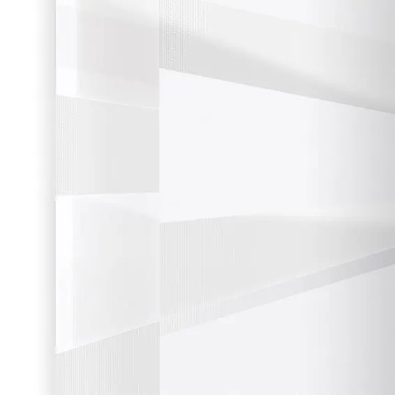 Bright White Zebra Blinds feature dual sheer and opaque fabric layers for smooth day and night light control. Adjust the sliding panels to filter sunlight or enhance privacy. Made to measure with durable aluminium tube and optional motorised operation.