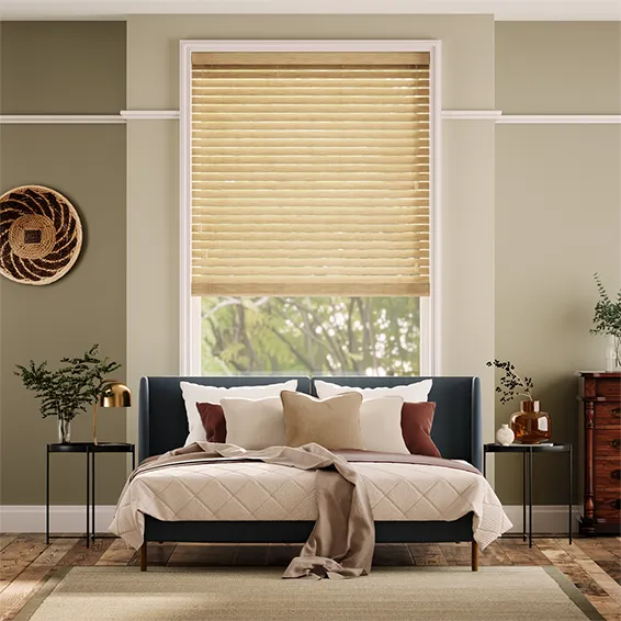 Chic 50mm bamboo slats bring warmth and style to any room. Fully custom-made from 100% natural bamboo, easy to clean, and simple to operate with dual-side control cords for effortless shading and sustainable elegance.